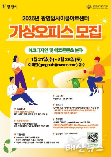 태산뉴스 이동욱 기자 | 광명시 광명업사이클아트센터는 오는 2월 28일까지 ‘2026년 상반기 가상오피스 지원사업’ 입주 기업을 모집한다.