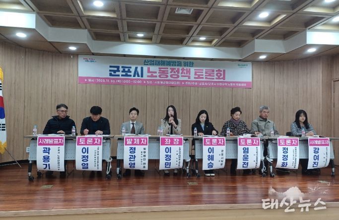 태산뉴스 이동욱 기자 | 군포시와 군포시 비정규직노동자지원센터는 11월 30일 노동자의 안전을 보호하고 산업재해 예방을 위해'군포시 노동정책 토론회'를 시청 별관회의실에서 개최했다.