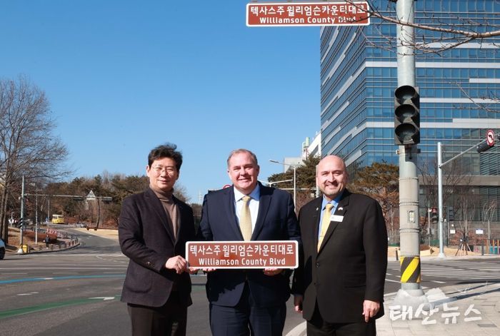 태산뉴스 이동욱 기자 | 용인특례시는 기흥구 농서동 삼성전자 기흥캠퍼스 앞 도로 370m 구간을 ‘윌리엄슨 카운티 대로(Willamson County)’라는 명예도로명을 부여했다고 22일 밝혔다.
