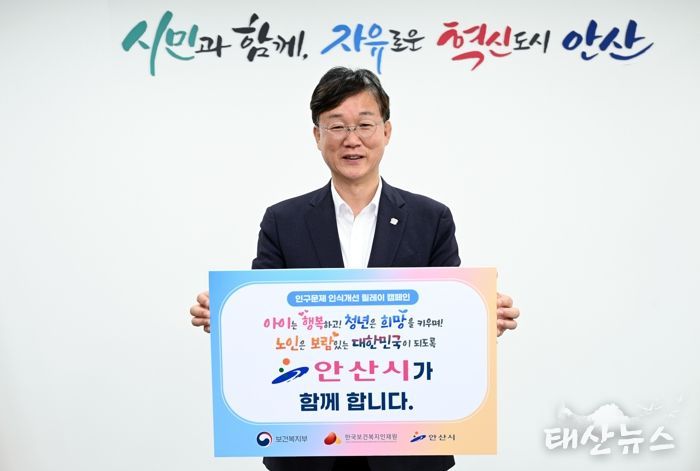 태산뉴스 이동욱 기자 | 안산시는 지난 18일 이민근 안산시장이 ‘인구문제 인식 개선 릴레이 캠페인’에 참여해 저출생과 고령사회에 대한 시민들의 공감대 확산에 동참했다고 19일 밝혔다.