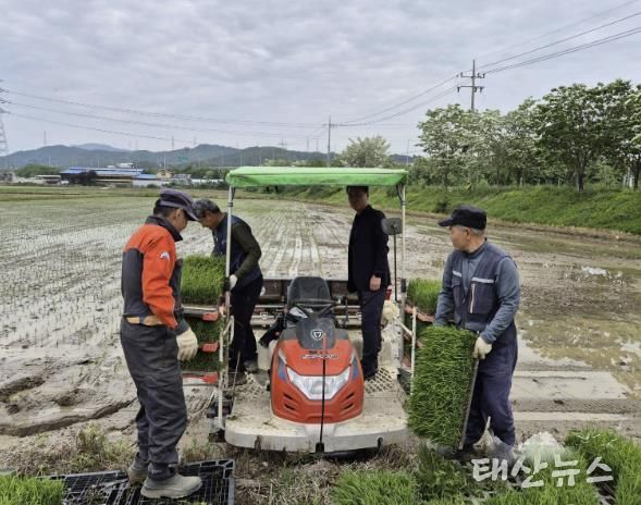 태산뉴스 이동욱 기자 | 고삼면은 5월 19일 본격적인 영농철을 맞아 고삼면 가유리의 모내기 현장을 방문해 이른 새벽부터 모내기에 여념이 없는 농가를 격려했다.