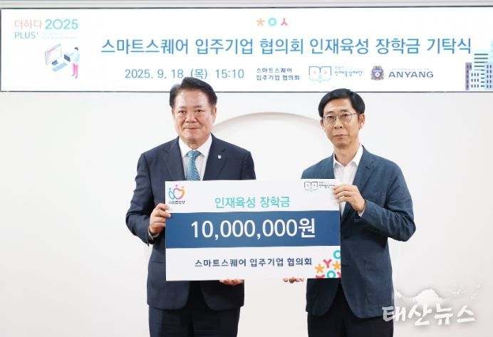 태산뉴스 이동욱 기자 | 안양시 인재육성재단은 18일 스마트 스퀘어 입주기업 협의회로부터 1천만 원의 인재육성 장학금을 기탁받았다고 19일 밝혔다.
