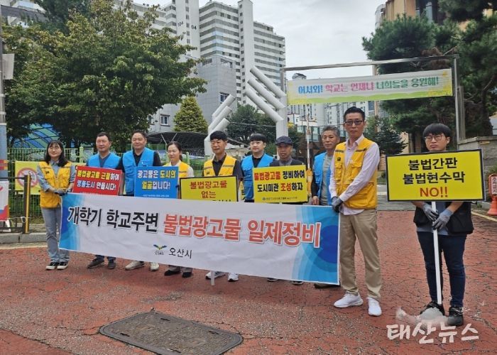 태산뉴스 이동욱 기자 | 오산시는 2025년 9월 18일, 개학기를 맞아 학생들의 안전한 통학 환경을 확보하고 쾌적한 학습 공간을 제공하기 위해 학교 주변의 불법 현수막에 대한 일제 정비를 실시했다고 밝혔다.