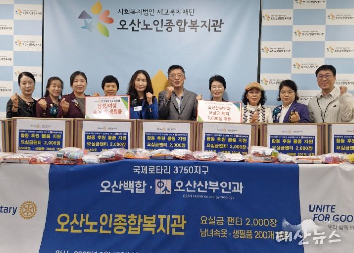 태산뉴스 이동욱 기자 | 오산노인종합복지관은 9월 17일, 오산백합로타리클럽과 오산산부인과로부터 요실금 팬티 2,000장과 남녀속옷·생필품 세트 200개를 전달받았다고 전했다.