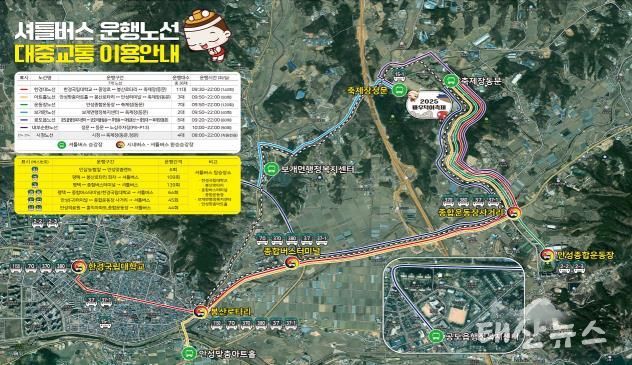 태산뉴스 이동욱 기자 | 안성시는 시민과 관광객의 편의를 강화하고 교통 혼잡을 최소화하고자 2025 남사당 바우덕이 축제장(안성맞춤랜드)을 오가는 무료 셔틀버스를 운행한다.