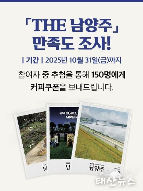 태산뉴스 이동욱 기자 | 남양주시는 시민의 의견을 반영해 한층 발전된 소식지를 제작하기 위해 10월 1일부터 31일까지 온라인 설문을 통한 만족도 조사를 진행한다.