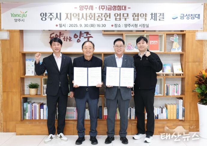 태산뉴스 이동욱 기자 | 양주시가 지난 30일 시청 시장실에서 ㈜금성침대와 지역사회공헌 업무 협약을 체결했다.