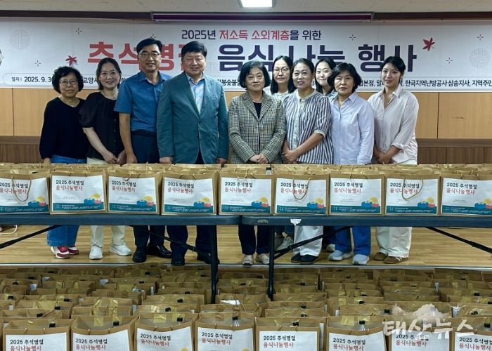 태산뉴스 이동욱 기자 | 고양특례시 삼송동종합복지회관은 지난 30일, 2025년 한가위를 맞아 지역 내 저소득 소외계층을 위한 추석명절 음식 나눔 행사를 개최했다고 밝혔다.