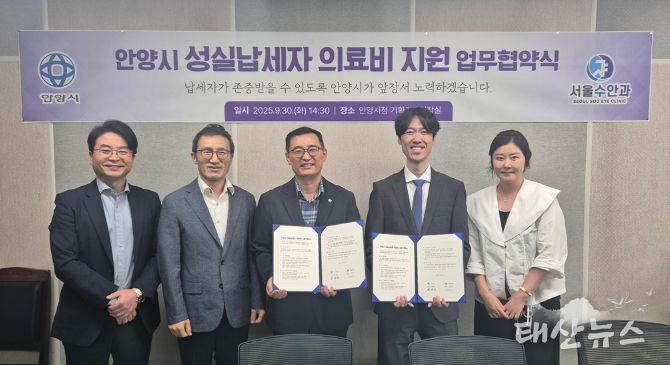 태산뉴스 이동욱 기자 | 안양시는 지난달 30일 오후 2시30분 3층 기획경제실장실에서 관내 의원인 서울수안과와 ‘성실납세자 의료비 지원’ 업무협약을 체결했다고 1일 밝혔다.