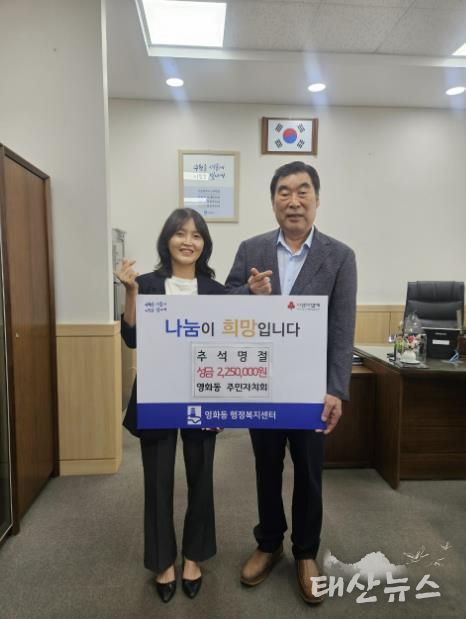 태산뉴스 이동욱 기자 | 수원시 장안구 영화동 주민자치회는 지난 1일, 추석 명절을 앞두고 관내 도움이 필요한 이웃들을 위해 성금 225만원을 기부했다고 밝혔다.