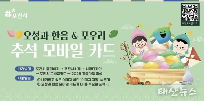 태산뉴스 이동욱 기자 | 포천시는 지난 1일 민족 최대 명절 추석을 맞아 시민들이 감사와 따뜻한 마음을 손쉽게 전할 수 있도록 ‘추석 모바일 카드’를 무료 배포했다.