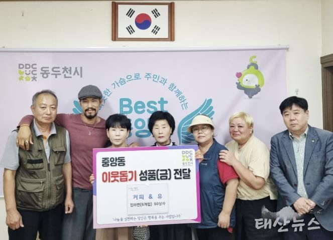 태산뉴스 이동욱 기자 | 동두천시 중앙동 행정복지센터는 9월 30일, 동두천 커피앤유(대표 박애희)로부터 이웃돕기 성품인 컵라면(6개입) 60상자를 기탁받았다고 밝혔다.