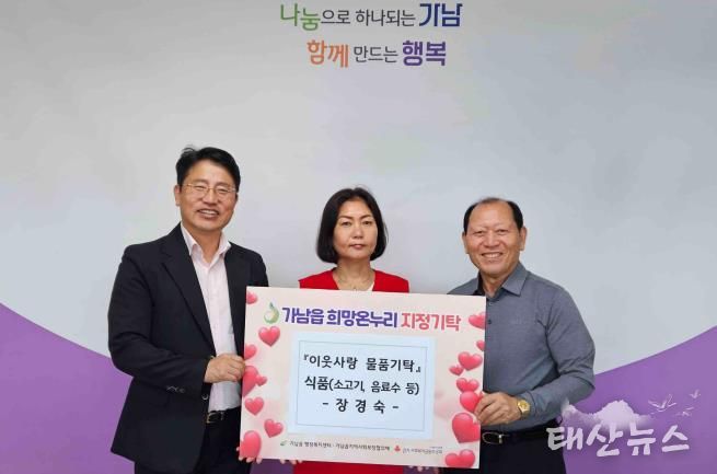 태산뉴스 이동욱 기자 | 지난 9월 30일 장경숙(가남읍 주민)씨가 가남읍 내 어려운 이웃들을 위해 소고기와 음료수 등 식품을 가남읍 행정복지센터에 기탁했다.
