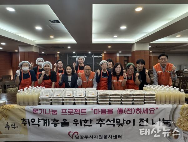 태산뉴스 이동욱 기자 | 남양주시자원봉사센터는 추석맞이 집중 주간을 맞이하여 9월 25일부터 오는 10월 3일까지 약 1,300명의 관내 취약계층을 대상으로 ‘추석맞이 전 나눔 활동’을 펼쳤다.
