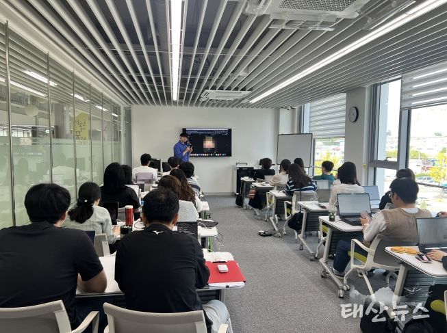 태산뉴스 이동욱 기자 | (재)파주시청소년재단(대표 원희복)은 9월 26일과 10월 1일 양일간 파주시청소년수련관에서서 임직원을 대상으로 ‘AI 활용 실무교육’을 개최했다. 이번 교육은 현업 적용 중심으로 기획되어, 1일차에는 홍보콘텐츠 제작, 2일차에는 업무 자동화 도우미 만들기 과정을 운영했다.
