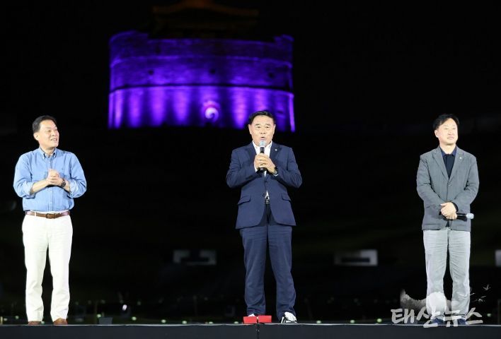 태산뉴스 이동욱 기자 | 수원특례시의회는 지난 10월 4일 연무대 특설무대에서 열린 제62회 수원화성문화제 주제공연 ‘수원판타지-야조’를 시민들과 함께 관람했다.