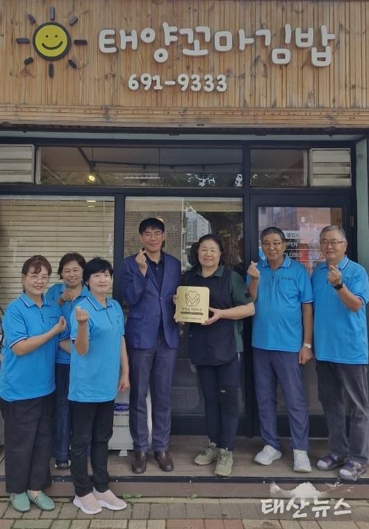 태산뉴스 이동욱 기자 | 평택시 팽성읍 지역사회보장협의체는 지난 2일, 나눔 활동에 동참한 ‘태양꼬마김밥’에 ‘착한 이웃’ 현판을 전달했다.