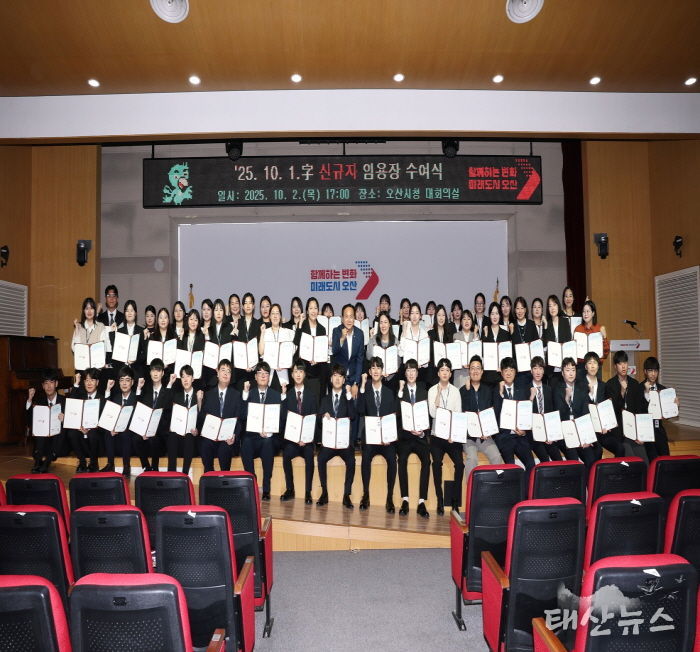 태산뉴스 이동욱 기자 | 오산시는 지난 10월 2일 오산시청 대회의실에서 2025년 신규 임용 공직자 52명을 대상으로 임용장 수여식을 개최했다고 밝혔다.