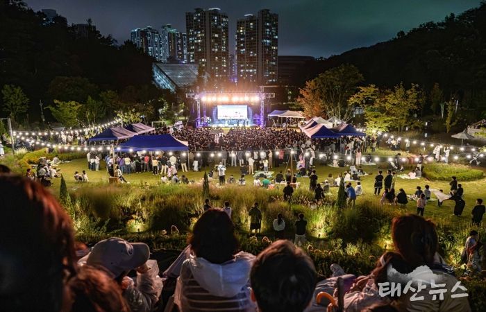 태산뉴스 이동욱 기자 | 수원특례시가 11일 영흥수목원 잔디마당에서 ‘일하는 시민과 함께하는 숲속 별빛 음악회’를 열었다. 이날 음악회에는 노동 단체원과 시민 등 1000여 명이 함께했다.