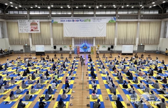 태산뉴스 이동욱 기자 | 초등학생 500명이 참여한 ‘2025 수원 독서골든벨’ 대회가 11일 경기도인재개발원 체육관에서 열렸다.