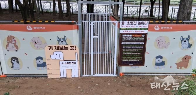 태산뉴스 이동욱 기자 | 동두천시는 반려견과 시민이 함께 어울릴 수 있는 반려동물 문화공간을 조성하기 위해 강변로 156(강변근린공원 내)에 반려견 간이놀이터(이동식 울타리)를 설치하고 시범운영에 들어갔다고 밝혔다.