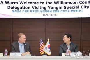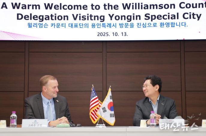 태산뉴스 이지율 기자 | 이상일 용인특례시장이 13일 용인의 자매도시인 미국 텍사스주 윌리엄슨카운티의 대표단과 만나 양 도시의 발전을 위한 협력 방안을 논의했다.