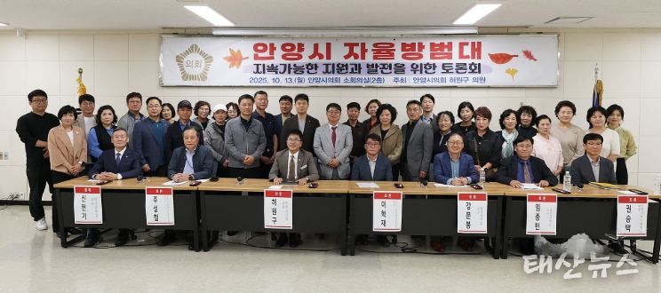 태산뉴스 이동욱 기자 | 안양시의회 허원구 의원(국민의힘, 비산1‧2‧3‧부흥동)은 10월 13일 시의회 소회의실에서 ‘안양시 자율방범대 지속가능한 지원과 발전을 위한 토론회’를 개최했다.