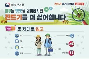 진드기 매개 감염병 예방을 위해서는 ▲야외 활동 시 진드기 기피제 사용 및 긴소매·긴바지·모자 등 착용으로 피부 노출 최소화 ▲야외활동 후 즉시 샤워 및 옷 갈아입기 ▲얼굴, 귀, 몸통 등에 진드기 부착 여부 확인 등의 수칙을 지켜야 한다.