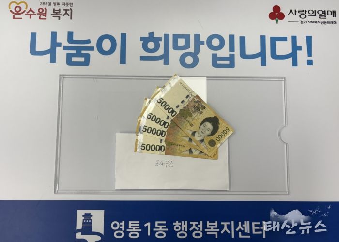 신한길 영통1동장은 “도움을 받던 분이 다시 나눔을 실천하는 모습에 큰 감동을 받았다”며 “지역사회 내 선한 영향력이 더욱 확산되어 모두가 함께하는 따뜻한 공동체가 만들어질 수 있도록 노력하겠다”고 말했다.