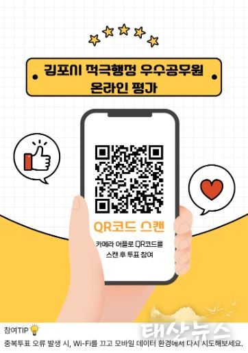 온라인평가 페이지는 김포시청 홈페이지의 ‘적극행정 알림 소식’ 코너를 이용하거나 웹포스터의 큐알코드를 휴대전화로 스캔해 접속할 수 있다.
