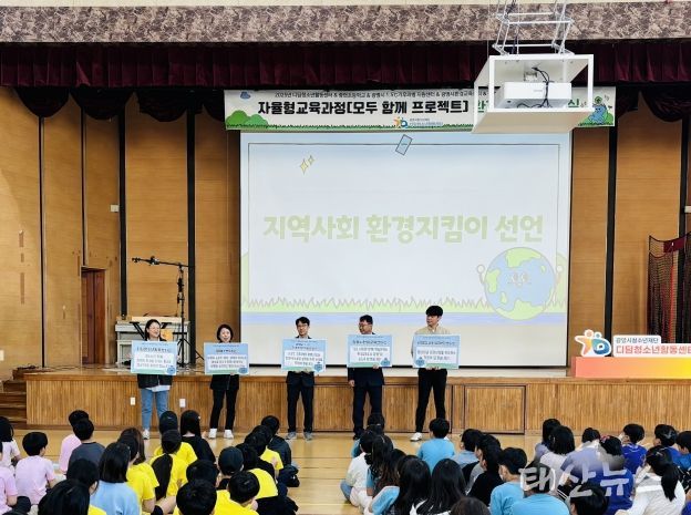 태산뉴스 이동욱 기자 | (재)광명시청소년재단(이사장 박승원) 디딤청소년활동센터(센터장 안미선)는 충현초등학교(교장 김형식), 광명시 1.5℃기후의병 지원센터(탄소중립정책팀장 김현태), 광명시환경교육센터(센터장 김동현), 광명업사이클아트센터(센터장 강진숙), 광명YMCA(사무총장 윤재향)와 연계하여 10월 15일 ‘환경지킴이 선언식’을 진행했다.