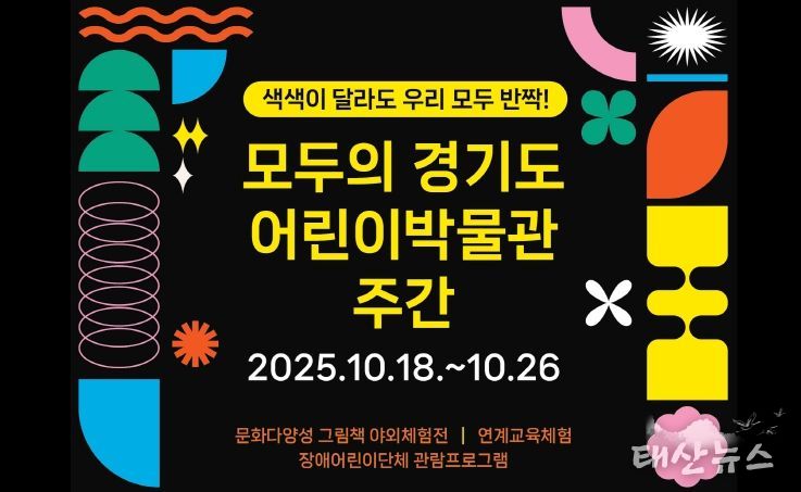 태산뉴스 김준수 기자 | 경기문화재단 경기도어린이박물관(관장 박균수)은 오는 10월 18일부터 10월 26일까지 문화다양성 행사 〈색색이 달라도 우리 모두 반짝! 모두의 경기도어린이박물관 주간〉을 운영한다. 본 행사는 《문화다양성 그림책 야외체험전》, 유아 및 초등 어린이를 위한 연계프로그램, 장애어린이단체 맞춤형으로 개발된 접근성 콘텐츠를 활용한 관람프로그램 시범운영 등 총 3종으로 구성되어 다양한 모습의 관람객을 만나게 된다.