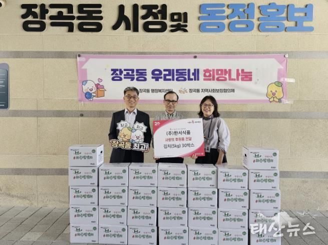 한서식품은 다양한 종류의 한서김치를 판매하는 김치 전문회사로, 지난 2월 장곡동 지역사회보장협의체와 협약을 맺은 이후, 꾸준히 김치를 지원하며 이웃과 함께하는 나눔 기업으로 자리매김하고 있다. 이번 후원은 지난 협약 체결 이후 네 번째로 진행된 나눔으로, 지속적인 선행을 실천하며 시민들의 식생활에 실질적인 도움을 주고 있다.