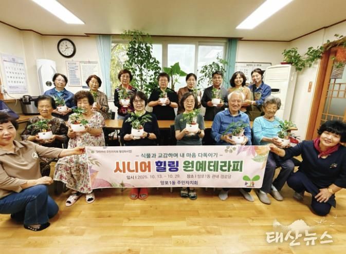 태산뉴스 이동욱 기자 | 수원시 영통구 망포1동 주민자치회는 고령화로 인한 어르신들의 정서적 고립과 우울감을 해소하고 마음의 활력을 되찾기 위해 '어르신 마음성장 프로젝트'의 프로그램으로 ‘시니어힐링 원예테라피’를 운영하고 있다.