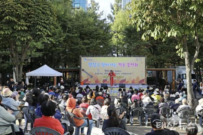 이번 음악회는 아파트로 직접 찾아가 구민 화합을 위한 문화 공연을 펼치기 위해 기획됐으며, 아파트 주민 300여 명이 참석한 가운데 진행됐다.