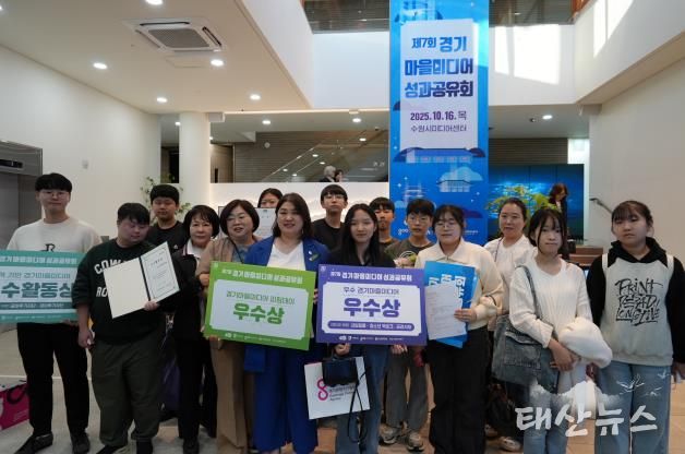 태산뉴스 이동욱 기자 | 안성미디어센터에서 활동하는 미디어 동아리 ‘꿈마루 기자단’과 ‘내일필름’이 ‘2025 경기마을미디어 성과공유회’에서 각각 우수 경기마을미디어 분야 우수상, 지역 기반 경기마을미디어 우수활동상, 경기마을미디어 우수피칭상 총 3개 부문에서 수상했다.