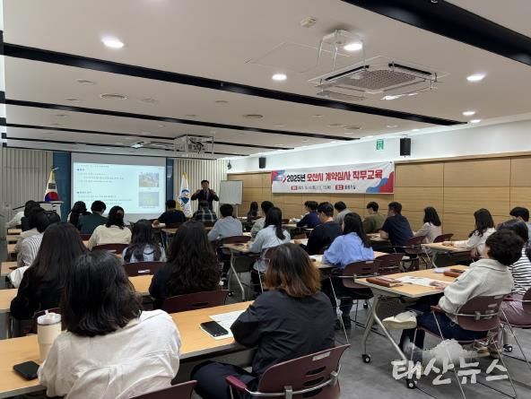 태산뉴스 이동욱 기자 | 오산시는 지난 16일 오산시청 물향기실에서 본청 및 산하기관 발주 담당자 45명을 대상으로 ‘2025년 계약심사 직무교육’을 실시했다고 밝혔다.