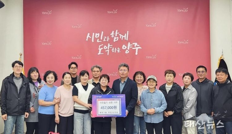 태산뉴스 이동욱 기자 | 양주시 회천1동 주민자치회(회장 최태옥)가 최근 어려운 이웃을 돕기 위해 벼룩시장 운영 수익금 전액인 45만7천 원을 회천1동 행정복지센터에 기부했다.