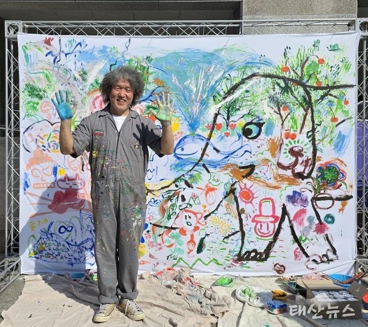 낮 12시 아람누리 해받이터에서는 그림책 작가 김중석이 ‘함께 그리니까, 좋다’를 주제로 2시간 동안 그림 그리기 공연을 진행했다. 참가자들은 실시간으로 눈앞에서 그림책이 만들어지는 과정을 체험하며 어른·아이 할 것 없이 따뜻한 이야기에 함께 공감했다.