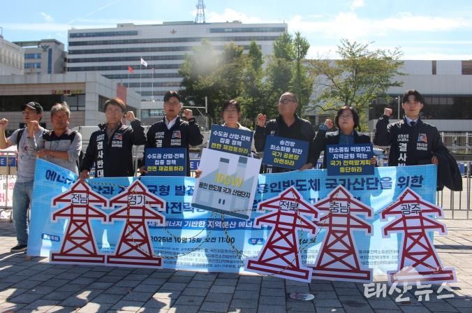태산뉴스 이동욱 기자 | 송전선로 및 LNG발전소 건립반대 안성시 범시민대책위원회가 15일, 용산 대통령실 앞에서 열린 송전선로 반대 기자회견에 참여해 목소리를 보태고, 이재명 정부에 용인 반도체 국가산단을 위한 송전선 건설을 전면 재검토할 것을 요구했다. 기자회견에는 정효양 범시민대책위 위원장과 이용성 사무국장, 강우전 송전선로 분과위원장 등 범시민대책위와 안성시의회 황윤희·이관실 의원도 참여했다. 이들은 기자회견 후 국회 토론회도 참석, 용인 국가반도체산단을 위한 전력집중 문제를 함께 살폈다.