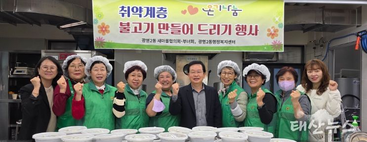 태산뉴스 이동욱 기자 | 광명시 광명2동 새마을부녀회는 지난 20일 광명2동 행정복지센터에서 ‘온기 나눔 사랑의 불고기’ 행사를 열었다.