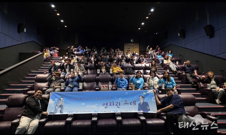 태산뉴스 이지율 기자 | 평택북부장애인복지관은 가수 임영웅 팬클럽 ‘영웅시대 평택 온기’와 함께 10월 23일(목) 14:00부터 17:00까지 CGV평택고덕점에서 평소 영화 관람이 어려운 평택시 장애인 50명을 초청하여 함께 영화를 보는 문화 행사 ‘임영웅과 온기의 영화관 초대’ 행사를 진행 했습니다.
