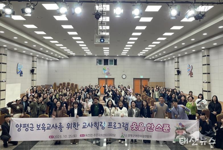 태산뉴스 이동욱 기자 | 양평군어린이집연합회는 지난 25일 옥천면 다목적복지회관에서 관내 보육교직원 300여 명이 참석한 가운데 보육교직원 치유 프로젝트 ‘웃음 한 스푼’을 성황리에 개최했다.