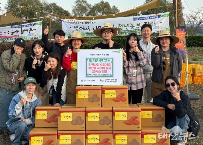 태산뉴스 이동욱 기자 | 남양주시는 지난 25일 조안면 소재 남양주샐러드팜에서 청년 농업인 단체 ‘달려라연구소’가 북부희망케어센터에 농산물꾸러미 20박스를 전달했다고 밝혔다.