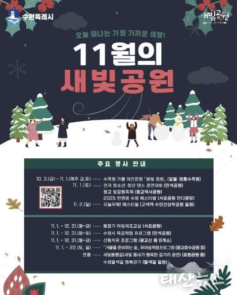 태산뉴스 이동욱 기자 | 수원시 공원 곳곳에서 11월 한 달 동안 시민들이 즐길 수 있는 다양한 축제와 문화행사가 열린다.
