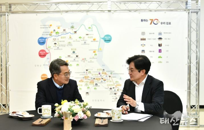 태산뉴스 이동욱 기자 | 김병수 김포시장이 3일 김동연 경기도지사와 차담회를 갖고 김포골드라인 전동차 증차 지원 등 김포시민의 안전과 직결된 경기도 차원의 지원을 적극 요청하고 나섰다. 김포골드라인은 수 차례 요청에도 지원이 이뤄지지 않아 이번 차담회에서 경기도지사에게 다시 한 번 강력 어필한 것이다.