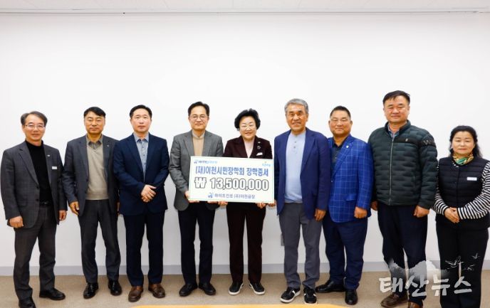 태산뉴스 이동욱 기자 | 하이트진로(주) 이천공장은 지난 11월 3일 이천시청 5층 다올실에서 올해 상반기에 이어 하반기 장학금 1,350만 원을 (재)이천시민장학회에 전달했다.