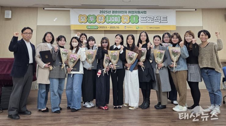 태산뉴스 이동욱 기자 | 평택시가족센터는 지난 29일 센터 다목적실에서 2025년 결혼이민자 취업 지원사업 ‘모두잡[JOB]고! 프로젝트’ 수료식을 진행했다.