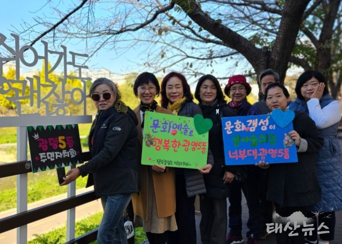 태산뉴스 이동욱 기자 | 광명시 광명5동 주민자치회는 4일 ‘걷고 싶은 목감천 쉼터 벤치 조성 사업Ⅱ(스탠딩힐링&감성글씨)’를 추진했다.