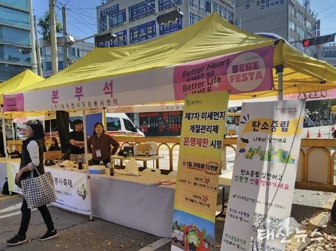 태산뉴스 이동욱 기자 | 동두천시는 지난 1일 시민평화근린공원에서 열린 ‘제18회 동두천자원봉사축제(베베페스타)’ 현장에서‘제7차 미세먼지 계절관리제 운행제한 홍보 캠페인’을 진행했다고 밝혔다.